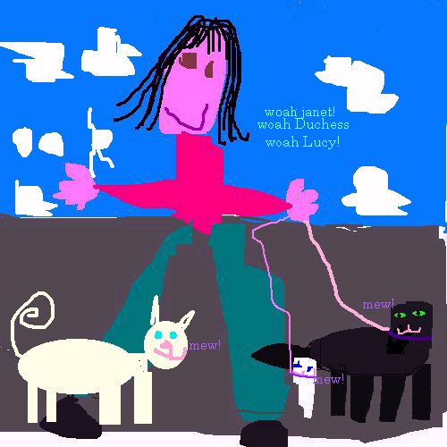 I like duchess. She's the cat. I like the collar and the lead,